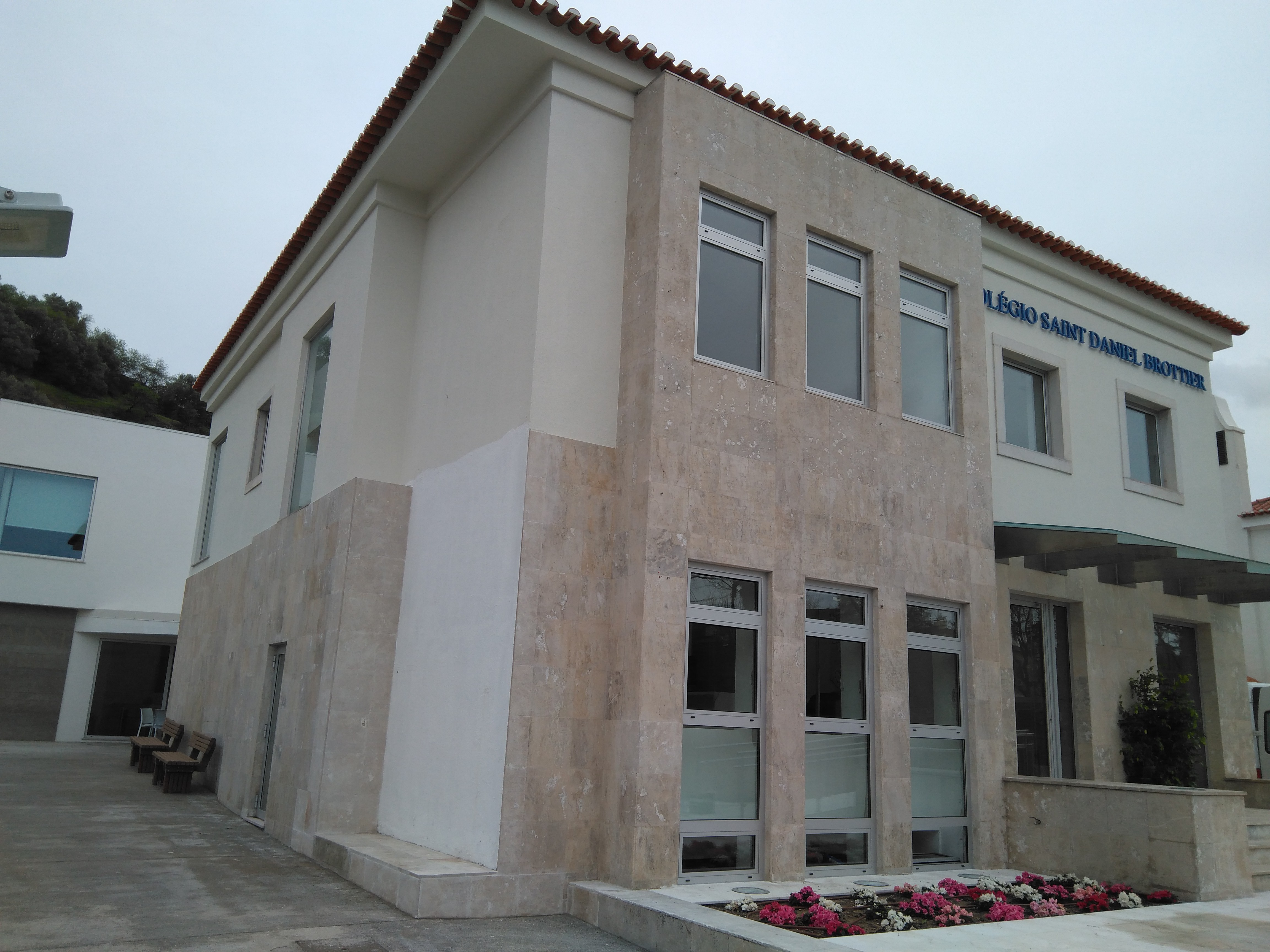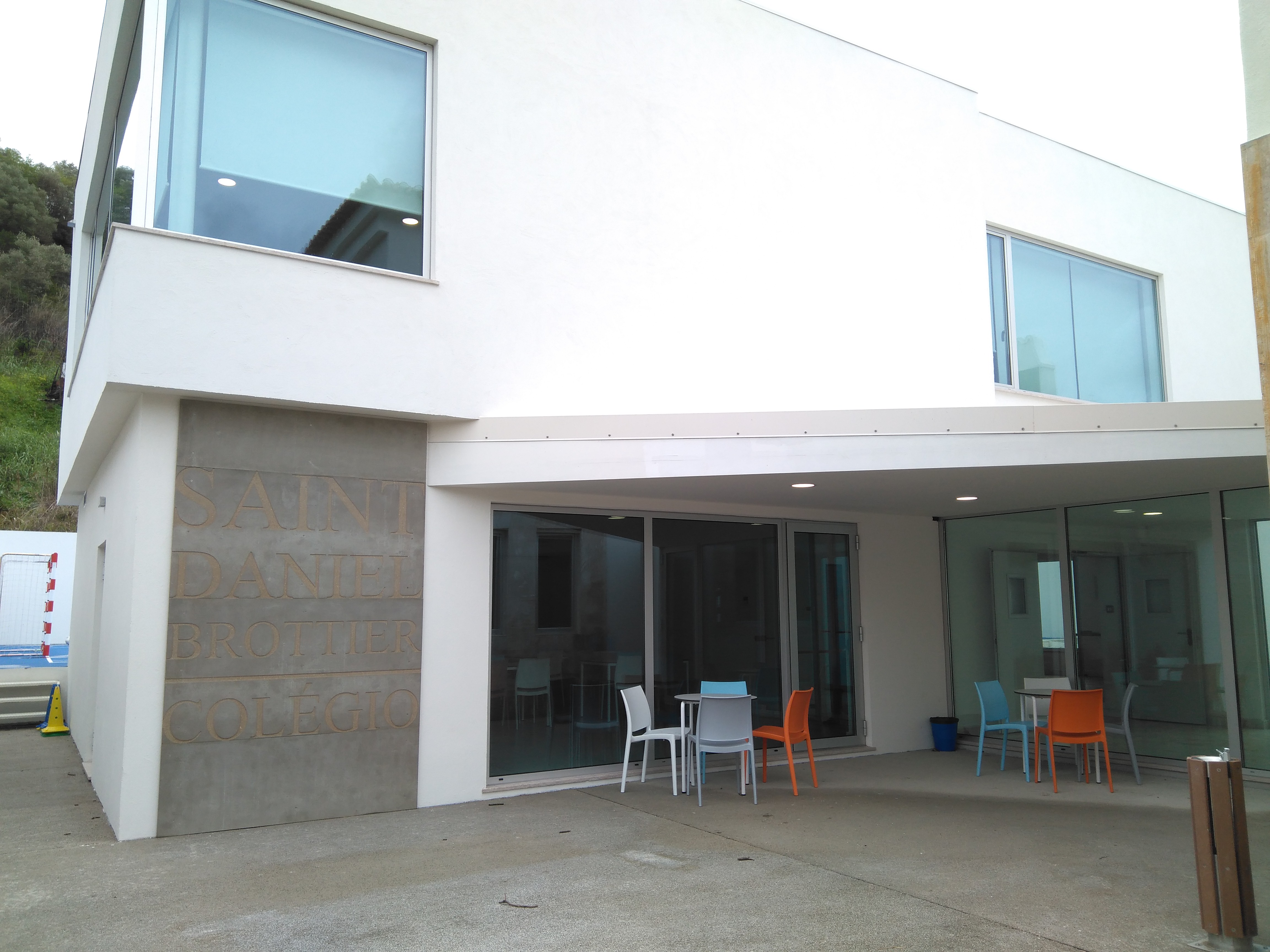 Instalação de caixilharia em alumínio num colégio escolar em Lisboa. Os vãos são constituídos por vidros laminados e temperados para garantir a segurança dos estudantes.